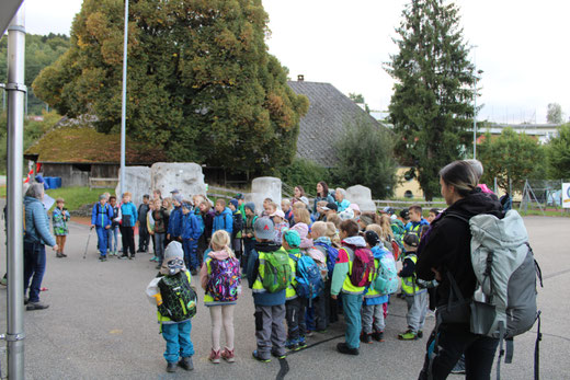 Am frühen Dienstagmorgen, 16. September, versammelten sich die Kids der Schule Altbüron auf dem Schulhausplatz. Nach dem Einstieg mit dem gemeinsam gesungenen Jahresmottolied wurde die fröhliche Schar zum Projekttag «Tatort Herbst» begrüsst. Ausgerüstet mit waldtauglicher Kleidung und dem Mittagessen im Rucksack machten sich die Kinder mit ihren Lehrerinnen auf den Weg zur Burgruine Grünenberg in Melchnau. Für die Jüngsten und für die Verletzten war der Schulbusshuttle organisiert, der sie fast bis zur Burg chauffierte.