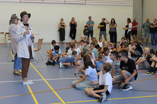 Detektive gesucht! Die beiden Detektivinnen Renner und Müller sind mit ihrer Energie am Ende - gut sind am 18. August fast 70 neue Detektive in der Schule Altbüron angekommen. Nachdem die jüngsten Schülerinnen und Schüler mit einem Spitzbueb vom Magenbrotprofi begrüsst wurden, konnten Renner/Müller ihre Arbeit endlich auf mehrere Schultern verteilen. In Vierergruppen lösten die Kinder sogleich ihre ersten Fälle und erforschten das Schulgelände, den Hauswart und die Lehrerinnen. Alle mit grossem Erfolg, denn am Ende der Suche wurden alle Nachwuchs-Detektive mit einem Ausweis und einer Lupe ausgestattet. In diesem Schuljahr kann uns nun gar nichts mehr passieren, wir lösen jeden Fall!